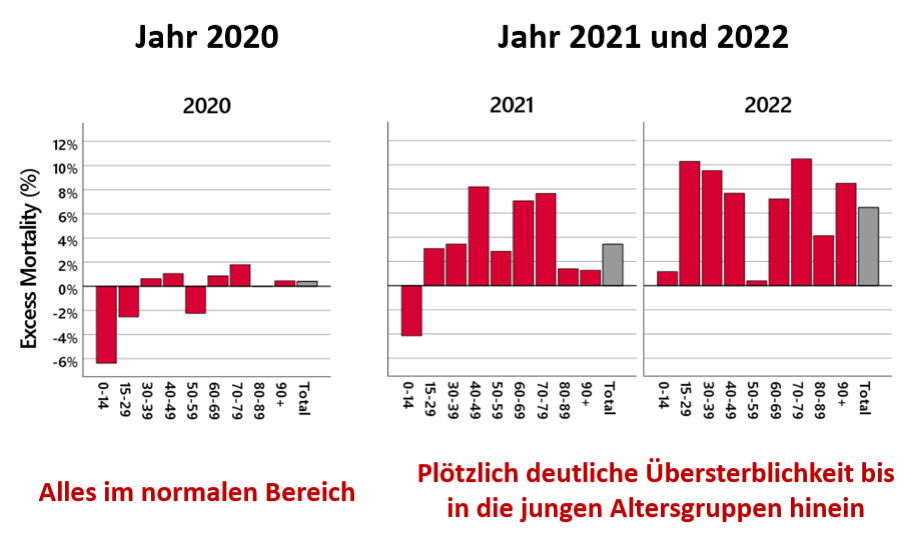 Der folgende Artikel Prof. Kuhbandners berichtet von einer Studie, welche die Auswirkungen der Corona-Krise auf die Sterblichkeit untersucht hat. Dabei wurden diese nicht einfach anhand der offiziell gemeldeten Covid-19-Todesfälle abgeschätzt, da ja nicht unterschieden wird, ob jemand mit oder an COVID-19 gestorben ist. So zeigt eine Studie in Dänemark z.B., dass 2022 etwa 70 % der gemeldeten COVID-19-Todesfälle nicht durch eine Corona-Infektion verursacht wurden. – Deshalb wurde die Zahl der gesamten Todesfälle unabhängig von den Ursachen mit der Zahl der Todesfälle verglichen, die ohne Pandemie zu erwarten gewesen wäre. Damit wurden auch indirekte negative Auswirkungen der Corona-Maßnahmen auf die Sterblichkeit wie die der mRNA-Spritzen erfasst.