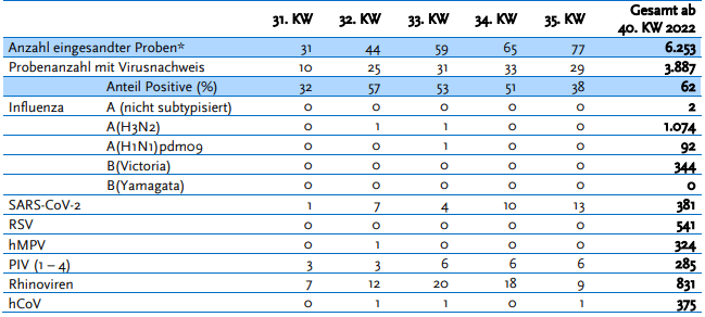 Quelle: Arbeitsgemeinschaft Influenza beim RKI, Berlin; aktueller Wochenbericht vom 5.9.2023