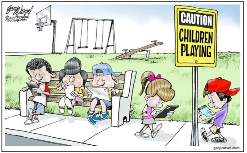 Die Bilder häufen sich: Eine Familie am Nachbartisch im Restaurant unterhält sich, die 7-jährige Tochter und sogar der 3-jährige Benjamin sind mit eigenen Handys ruhiggestellt. Während des Gesprächs sieht man auch den Vater und den 18-jährigen Neffen zwischendurch ständig wie zwanghaft ihr Handy aus der Tasche ziehen und herunterscrollen. Auf dem Spielplatz im Park hängen die Schaukeln unberührt, denn die Kinder sitzen oder stehen herum und sind ganz in ihre Handys oder Tablets vergraben. – Mit diesen Phänomenen ist eine Fülle von schweren pädagogischen und sozialen Problemen verbunden, von denen nachfolgend nur einem näher nachgegangen werden soll.