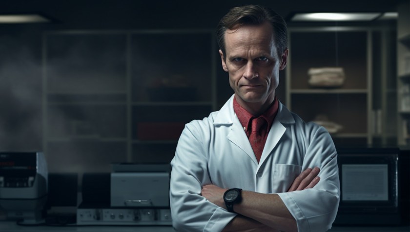 Symbolbild: Ein Laborchemiker verschränkt die Arme. Eine Impfstoff-Prüfung findet hier nicht statt.