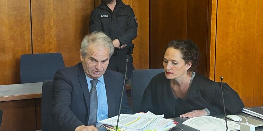 RA Dr. Reiner Fuellmich mit Verteidigerin (Foto Heusinger)