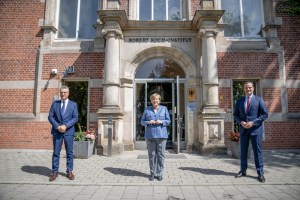 In Eintracht: Bundeskanzlerin Angela Merkel besucht mit Gesundheitsminister Jens Spahn das Robert-Koch-Institut, hier abgebildet mit dem Präsidenten des RKI, Lothar H. Wieler am 13.07.2021 (phoenix.de)